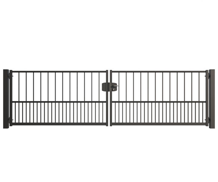 Gartentor ZAUNGURU BASIC-Line Hamburg aus Metall, Höhe: 103cm, Breite: 388cm, 2-flügelig inkl. Pfosten, Schloss und Zubehör, Feuerverzinkt und zusätzlich in RAL 7016 Anthrazitgrau pulverbeschichtet