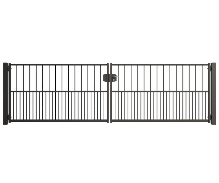 Gartentor ZAUNGURU BASIC-Line Hamburg aus Metall, Höhe: 123cm, Breite: 441cm, 2-flügelig inkl. Pfosten, Schloss und Zubehör, Feuerverzinkt und zusätzlich in RAL 7016 Anthrazitgrau pulverbeschichtet