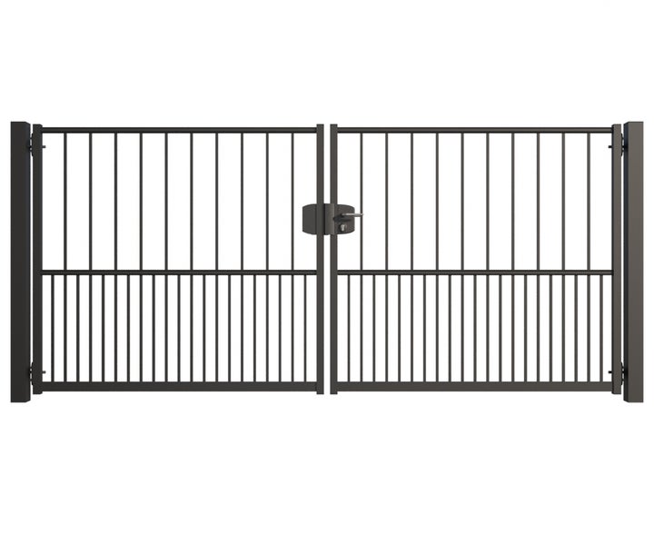 Gartentor ZAUNGURU BASIC-Line Hamburg aus Metall, Höhe: 143cm, Breite: 334cm, 2-flügelig inkl. Pfosten, Schloss und Zubehör, Feuerverzinkt und zusätzlich in RAL 7016 Anthrazitgrau pulverbeschichtet