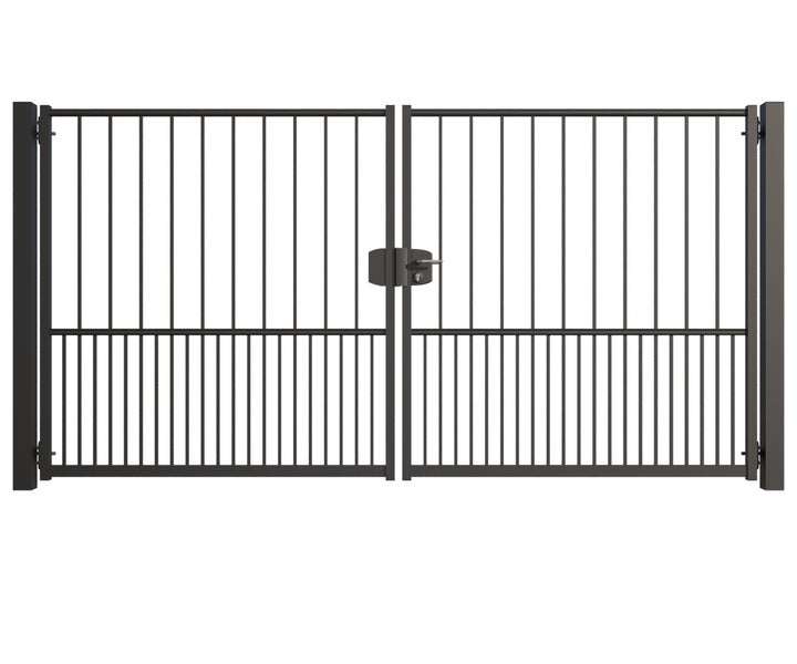 Gartentor ZAUNGURU BASIC-Line Hamburg aus Metall, Höhe: 163cm, Breite: 334cm, 2-flügelig inkl. Pfosten, Schloss und Zubehör, Feuerverzinkt und zusätzlich in RAL 7016 Anthrazitgrau pulverbeschichtet