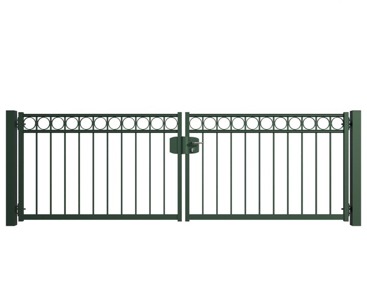 Gartentor ZAUNGURU BASIC-Line Oldenburg Kreis aus Metall, Höhe: 103cm, Breite: 334cm, 2-flügelig inkl. Pfosten, Schloss und Zubehör, Feuerverzinkt und zusätzlich in RAL 6005 Moosgrün pulverbeschichtet