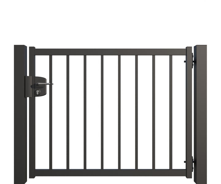 Gartentor ZAUNGURU BASIC-Linie Bremen aus Metall, Höhe: 103cm, Breite: 150cm, 1-flügelig inkl. Pfosten, Schloss und Zubehör, Feuerverzinkt und zusätzlich in RAL 7016 Anthrazitgrau pulverbeschichtet
