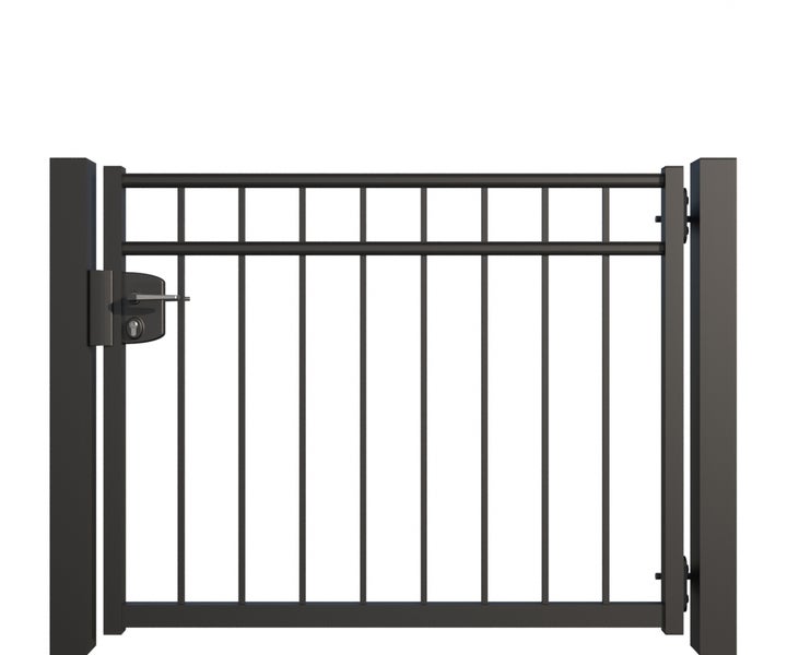 Gartentor ZAUNGURU BASIC-Linie Oldenburg aus Metall, Höhe: 103cm, Breite: 150cm, 1-flügelig inkl. Pfosten, Schloss und Zubehör, Feuerverzinkt und zusätzlich in RAL 7016 Anthrazitgrau pulverbeschichtet