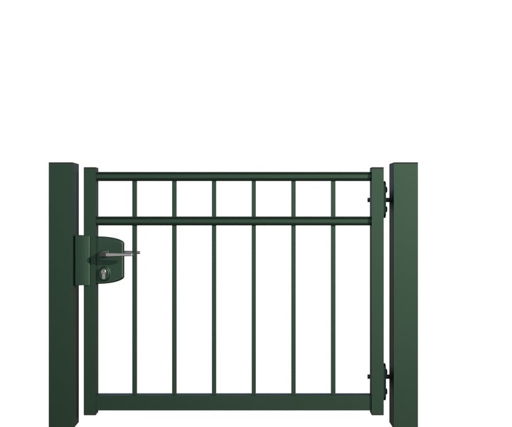 Gartentor ZAUNGURU BASIC-Linie Oldenburg aus Metall, Höhe: 83cm, Breite: 123cm, 1-flügelig inkl. Pfosten, Schloss und Zubehör, Feuerverzinkt und zusätzlich in RAL 6005 Moosgrün pulverbeschichtet