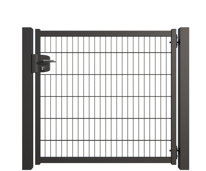 Gartentür ZAUNGURU BASIC-Line aus Metall, Höhe: 123cm, Breite: 150cm, 1-flügelig inkl. Pfosten, Locinox-Schloss und Zubehör, Feuerverzinkt und zusätzlich in RAL 7016 Anthrazitgrau pulverbeschichtet