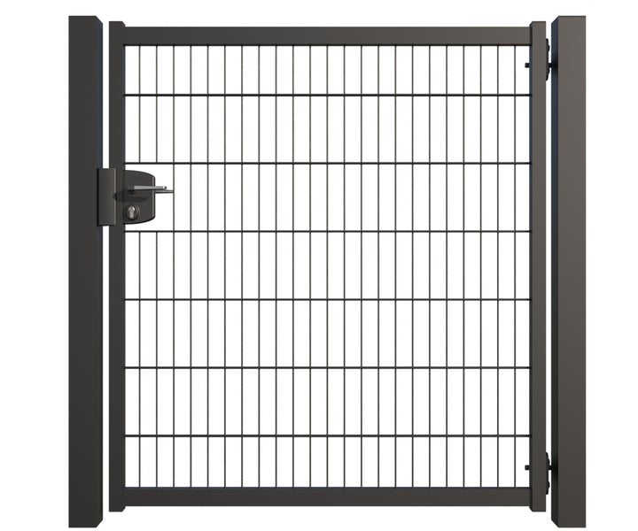 Gartentür ZAUNGURU BASIC-Line aus Metall, Höhe: 143cm, Breite: 150cm, 1-flügelig inkl. Pfosten, Locinox-Schloss und Zubehör, Feuerverzinkt und zusätzlich in RAL 7016 Anthrazitgrau pulverbeschichtet