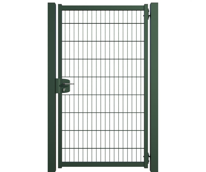 Gartentür ZAUNGURU BASIC-Line aus Metall, Höhe: 183cm, Breite: 123cm, 1-flügelig inkl. Pfosten, Locinox-Schloss und Zubehör, Feuerverzinkt und zusätzlich in RAL 6005 Moosgrün pulverbeschichtet