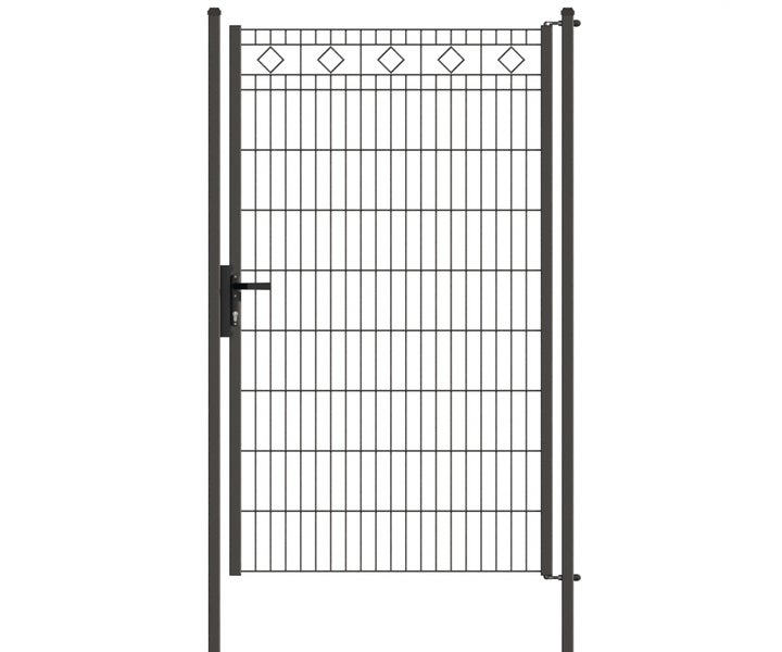 Gartentür ZAUNGURU ECO-Line Raute aus Metall, Höhe: 183cm, Breite: 123cm, 1-flügelig inkl. Pfosten, Locinox-Schloss und Zubehör, Feuerverzinkt und zusätzlich in RAL 7016 Anthrazitgrau pulverbeschichtet