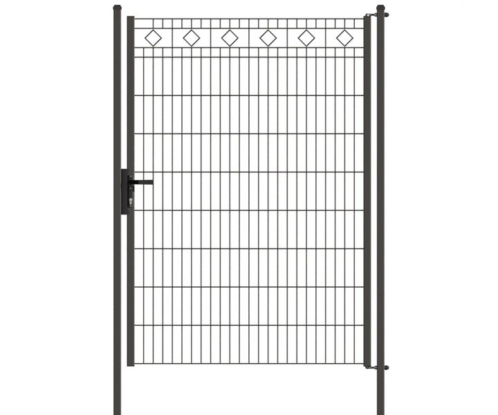 Gartentür ZAUNGURU ECO-Line Raute aus Metall, Höhe: 183cm, Breite: 143cm, 1-flügelig inkl. Pfosten, Locinox-Schloss und Zubehör, Feuerverzinkt und zusätzlich in RAL 7016 Anthrazitgrau pulverbeschichtet