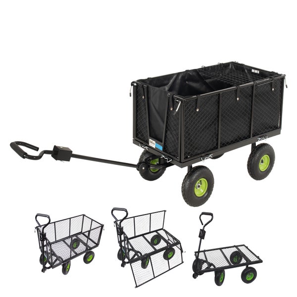 Gartenwagen herausnehmbare Plane 550 kg Bollerwagen klappbare Gitterwände Lufträder Anhängerfunktion