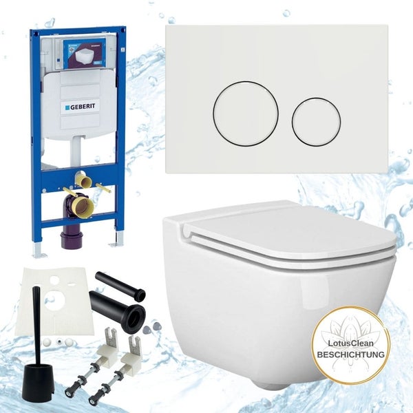 - Alles aus einer Hand: Komplett-Set mit Geberit Duofix UP320, HGMBAD Ference WC, WC-Sitz, Drückerplatte, Schallschutz-Set und WC-Bürste schwarz