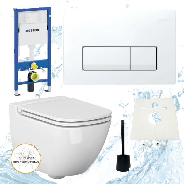 Geberit Vorwandelement Set mit spülrandlosem Ference WC, Drückerplatte & WC-Sitz