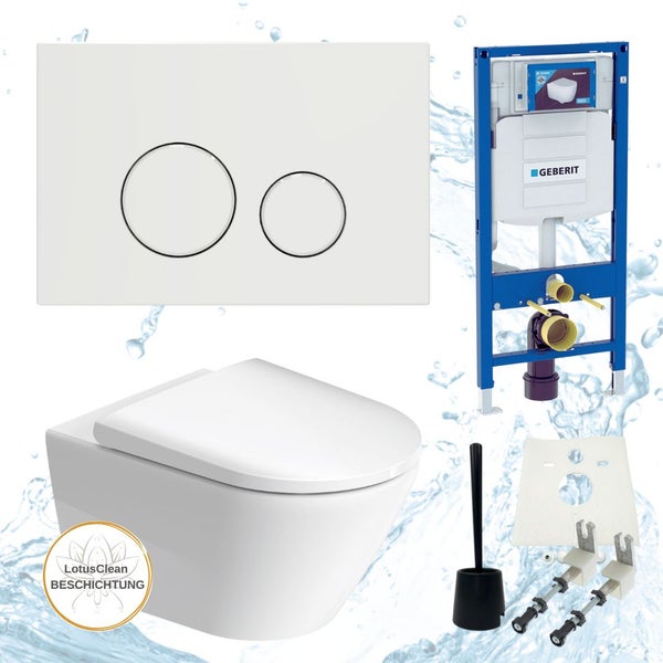 Geberit UP320 Sigma WC-Komplettset mit Duravit D-Neo, Lupo10 Drückerplatte Weiß & LotusClean Beschichtung