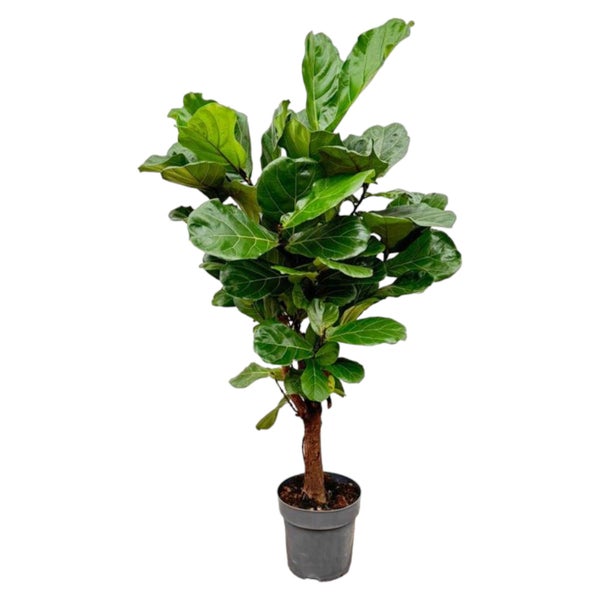 Die Ficus Lyrata, auch bekannt als Geigenfeige, hat große, glänzende Blätter, die eine einzigartige Geigenform haben.