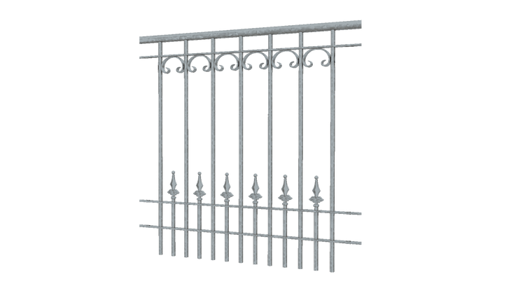 - Im Lieferumfang enthaltenein Geländerelement 96 cm breit, 90 cm hoch, feuerverzinkt