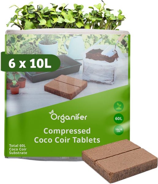 Gepresste Kokosfasertabletten in 10-Liter-Beuteln – 6er-Pack – 60 Liter - Organifer