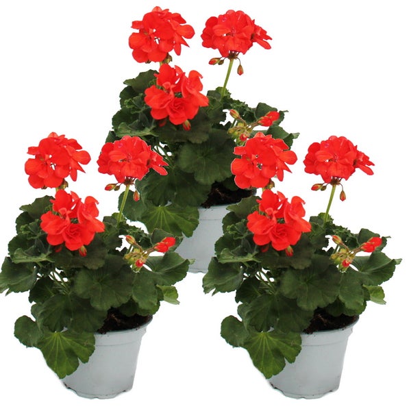 Geranien stehend - Pelargonium zonale - 12cm Topf - Set mit 3 Pflanzen - hellrot