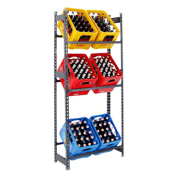 Das Getränkekistenregal CAMEL von PROREGAL ist ein qualitativ hochwertiges Getränkekistenregal und durch das einfache Stecksystem schnell zu montieren. Das Regal hat eine hohe Stabilität und ist ideal, um im Aufenthaltsraum, in der Garage oder in der Kantine die Getränkekisten aufzubewahren.