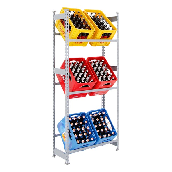 Das Getränkekistenregal CAMEL von PROREGAL ist ein qualitativ hochwertiges Getränkekistenregal und durch das einfache Stecksystem schnell zu montieren. Das Regal hat eine hohe Stabilität und ist ideal, um im Aufenthaltsraum, in der Garage oder in der Kantine die Getränkekisten aufzubewahren.