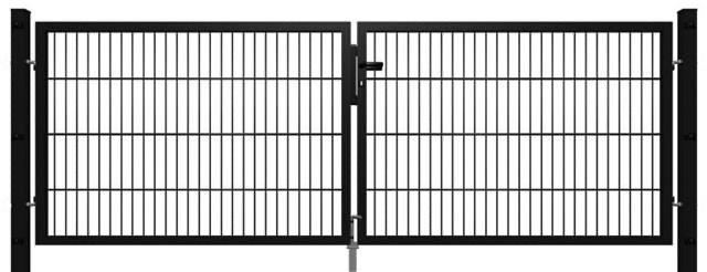 GEWA Eingangstor Classic zweiflügelig 4m breit 1m hoch Doppelstabmattentor in RAL7016 anthrazit inkl. Pfosten und Zubehör mit 80x80mm Pfosten
