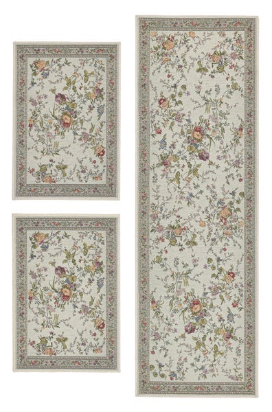 Ein sehr schönes florales Design zeigen diese gewebten Teppiche , die in jedem Raum ein echtes Schmuckstück sind. Florhöe 3 mm bestehend aus 63% Polyester, 33% Polypropylen und 4% Baumwolle. Der Teppich ist trotz seiner geringen Gesamthöhe sehr robust und strapazierfähig, zudem ist der Flomi Fußbodenheizung geeignet.