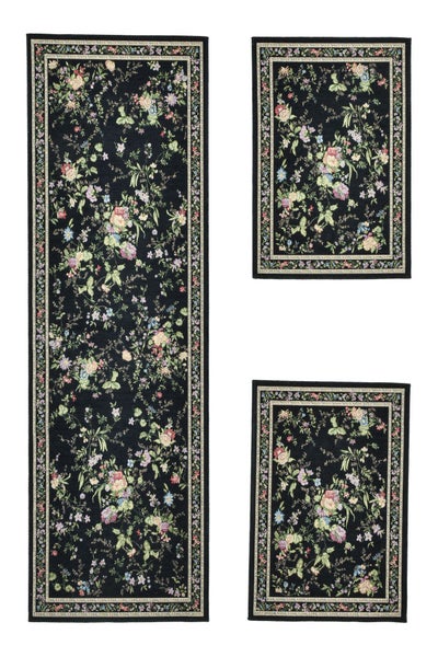 Gewebte Bettumrandung im floralen Design Flomi Schwarz 70x400 cm