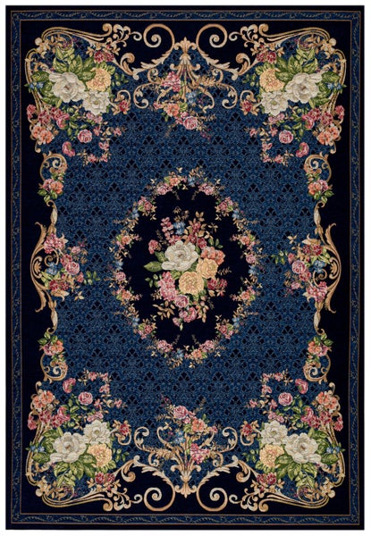 Gewebter Bordürenteppich im floralen Design Flomi Blau 240x340 cm