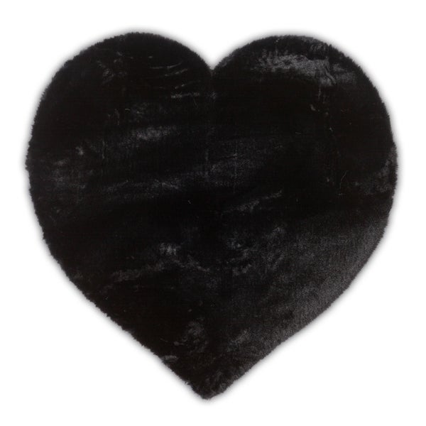 Gewebtes UNI Kunstfell Chiara Schwarz Herzform 90x90 cm