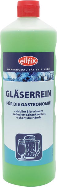 Gläser Reiniger - Eilfix, für die hygienische, manuelle Gläserreinigung Sorgen Sie für blitzsaubere Gläser mit unserem hochwertigen Gläser Reiniger Eilfix! Das flüssige Reinigungsmittel sorgt für eine hygienische und manuelle Gläserreinigung und verleiht Ihren Gläsern einen strahlenden Glanz - ganz ohne Abtrocknen! Dafür sorgen spezielle Rückfetter aus dem pflanzlichen Bereich, die eine optimale Schonung der strapazierten Haut gewährleisten. Mit seiner hochkonzentrierten Formel ist der Gläserreiniger äußerst ergiebig und reduziert zudem den Schankverlust. Eigenschaften: