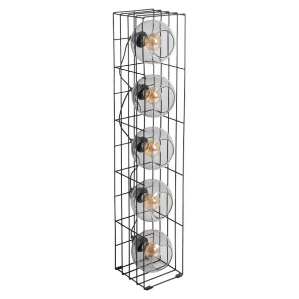 Glas-Stehleuchte CESTA Stehlampe aus schwarzem Metalldraht und getöntem Glas, mit E27-Fassung, 95 cm hoch, für Esszimmer, Wohnzimmer, Diele oder Büro,