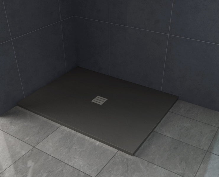 GLASDEALS 32 mm SMC Duschtasse Steinlook Acryl Duschwanne 140 x 90 cm in schwarz