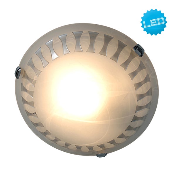 Sorgen Sie mit dieser Deckenleuchte für ein ein leuchtendes Highlight in Ihrem Zuhause Deckenleuchten sind perfekt, um für eine gleichmäßige Beleuchtung im Raum zu sorgen. Sie strahlen das Licht breitflächig ab, sodass jede Ecke erhellt wird, und tragen zu einer angenehmen und hellen Stimmung bei. Die Leuchte ist aus Metall und Glas gefertigt und in gold gehalten. Die Oberfläche des Schirmes ist satiniert. Die Maße der Deckenleuchte betragen 30 cm x 30 cm x 10 cm (Länge x Breite/Tiefe x Höhe). Die Leuchte hat also einen Durchmesser von 30 cm. Bei diesem Design ist die Beleuchtung fest integriert. Dieses Gerät ist für die Verwendung am Netz mit einer Netzspannung von 220-240V ~ 50Hz ausgelegt. Erleuchten Sie Ihre Wohnräume mit dieser 5 Watt starken Leuchte, die 450 Lumen und eine Lichttemperatur von 2700 Kelvin liefert. Verleihen Sie Ihrem Zuhause mit unserer hochwertigen Deckenleuchte das optimale Lichtambiente und genießen Sie Komfort und Stil in jedem Raum.