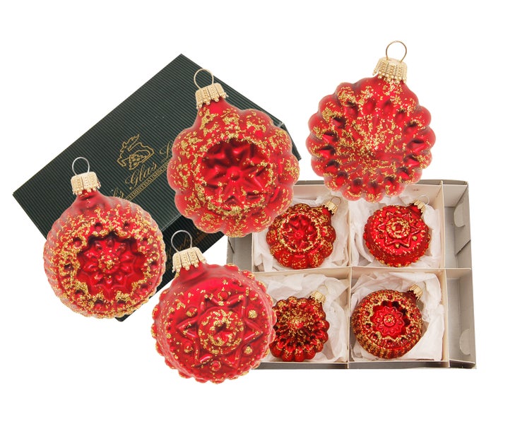 Glaskugelformen, 4er Set, rot 5cm, 4 Stck., Weihnachtsbaumkugeln, Christbaumschmuck, Weihnachtsbaumanhänger