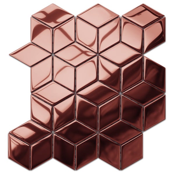 Glasmosaik auf Netz für Bad und Küche 26.5cm x 30.5cm - Copper Geometric Cubes