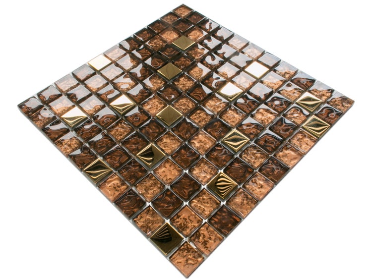 Glasmosaik auf Netz für Bad und Küche 30cm x 30cm - Gold brown