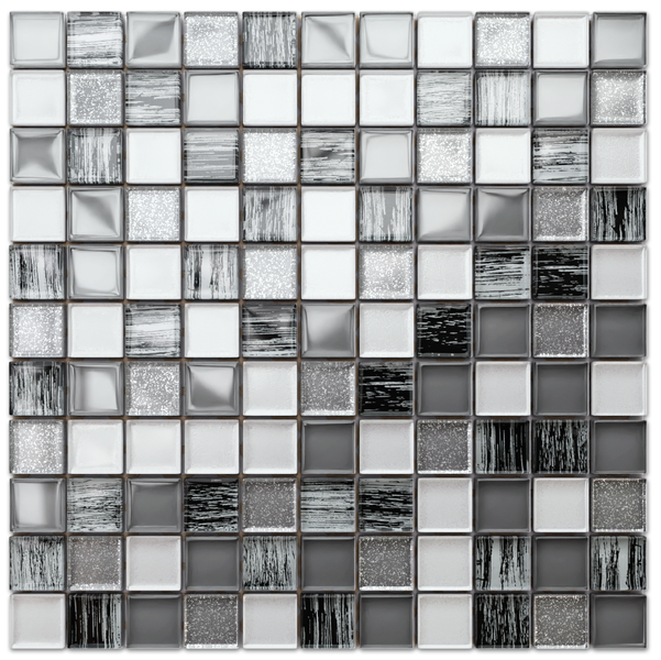 Glasmosaik auf Netz für Bad und Küche 30cm x 30cm - Grey Zebra