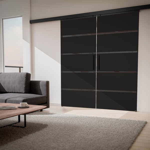 Glasschiebetür Inova Blockstreifen schwarz 1800 x 2035 mm Doppelflügelig Komplettset mit Stabgriff
