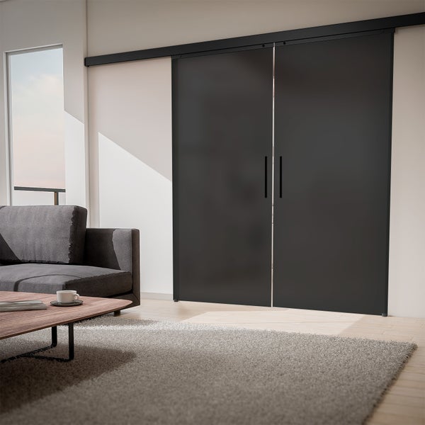Glasschiebetür Inova vollflächig satiniert schwarz 1800 x 2035 mm Doppelflügelig Komplettset mit Stabgriff inkl. 2Seitiger Softclose