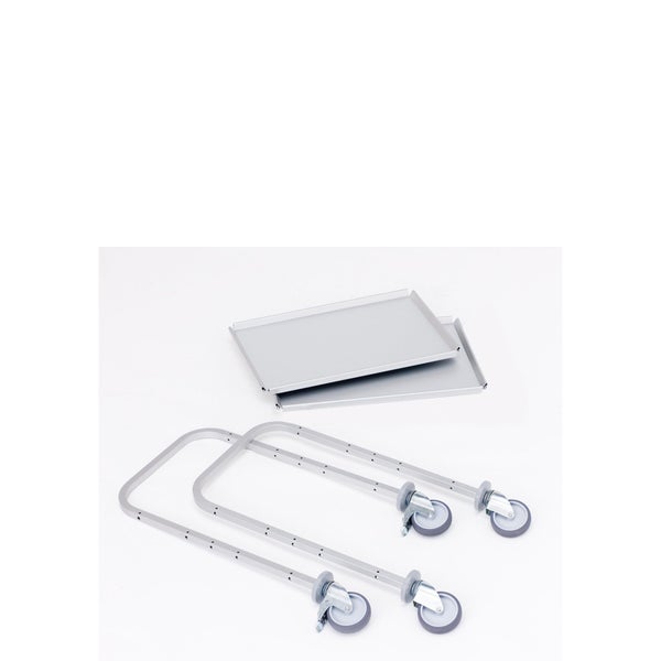 Hinweis: Diesen Artikel erhalten Sie als Speditionslieferung direkt vom Hersteller. Bitte geben Sie uns unbedingt eine Telefonnummer für die Spedition an. Des Weiteren kann dieser Artikel NUR innerhalb Deutschlands versendet werden. (This item can ONLY be shipped within Germany) Basisversion besteht aus 2 stirnseitigen Säulen aus eloxiertem Aluminium mit Rädern, 2 Böden – wahlweise eloxiertes Aluminium oder geschliffenes Edelstahl und Befestigungsmaterial Zerlegte Anlieferung reduziert Frachtkosten und Lagerplatz Übersichtliche Montageanleitung