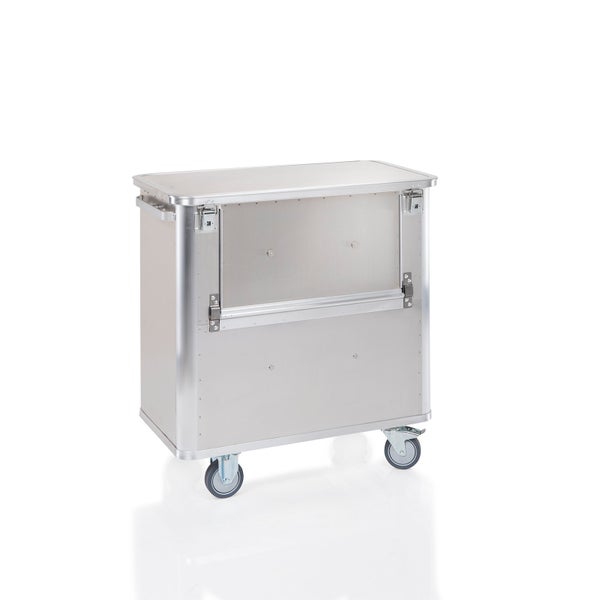 Hinweis: Diesen Artikel erhalten Sie als Speditionslieferung direkt vom Hersteller. Bitte geben Sie uns unbedingt eine Telefonnummer für die Spedition an. Des Weiteren kann dieser Artikel NUR innerhalb Deutschlands versendet werden. (This item can ONLY be shipped within Germany) Mit einer bis zur Hälfte abklappbaren Längswand Deckel mit Scharnieren, 2 Haltegurtbändern und 2 Hebelspannverschlüssen Glatte Oberfläche Wände und Aluminiumprofile sind durch Clinchen formschlüssig und damit extrem stabil verbunden Wände ohne Sicken, daher besonders leicht zu reinigen Geöffnete Klappe wird durch 2 Magnete gehalten Eloxierte Schiebegriffe an beiden Stirnwänden Boden mit Gefälle und 2 Abflusslöchern Beide Abflusslöcher mit Ablaufventil, Stöpsel und Kette Boden mit Silikon abgedichtet Stabile Fahrwerksträger aus verzinktem Stahl Radgehäuse aus verzinktem Stahl, Lauffläche aus thermoplastischem Gummi, grau spurlos, Präzisions-Kugellager und Kunststoff-Fadenschutz