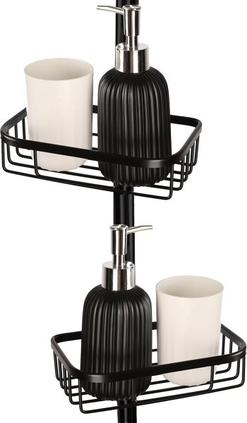 Goliving Duschregal hängend - Duschregal - Kein Bohren - Küchenregal - Spülbeckenorganisator - Badezimmerzubehör - 19,5 cm - 2er Set - Schwarz