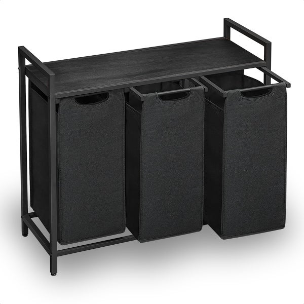 Goliving Wäschesortierer - Wäschekorb mit 3 Fächern - Wäschebox - Oxfort Textil/Metall/Holz - 3 x 38 Liter - D25xB92.5xH71 cm - Schwarz