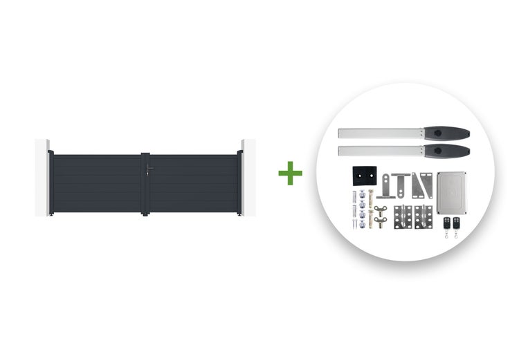 Graues elektrisches Flügeltor EIGER 350B115 + Motorisierung HICKER B200