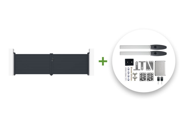 Graues elektrisches Flügeltor EIGER 400B115 + Motorisierung HICKER B200