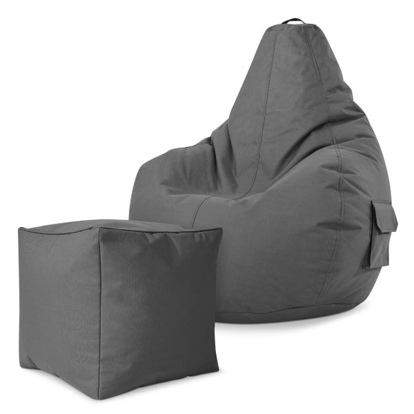 - SITZSACK + HOCKER: Duo bestehend aus Gaming Sitzsack mit Rückenlehne (80 x 70 cm) und Fußhocker (40 x 40 x 40 cm). Indoor- und Outdoor-geeignet. Jeweils mit Füllung aus EPS Perlen made in Germany und waschbarem Bezug aus 50% Polyester & 50% PVC. Bei Sitzsack dafür vorab die Füllung, bei Pouf einfach das separate Inlett entnehmen. In vielen Farben und Mustern erhältlich.
