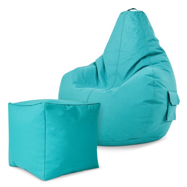 Green Bean 2er Set Sitzsack + Hocker - fertig befüllt - robust waschbar schmutzabweisend - Kinder & Erwachsene Bean Bag Bodenkissen Lounge Sitzhocker Relax-Sessel Gamer Gamingstuhl Pouf - Türkis