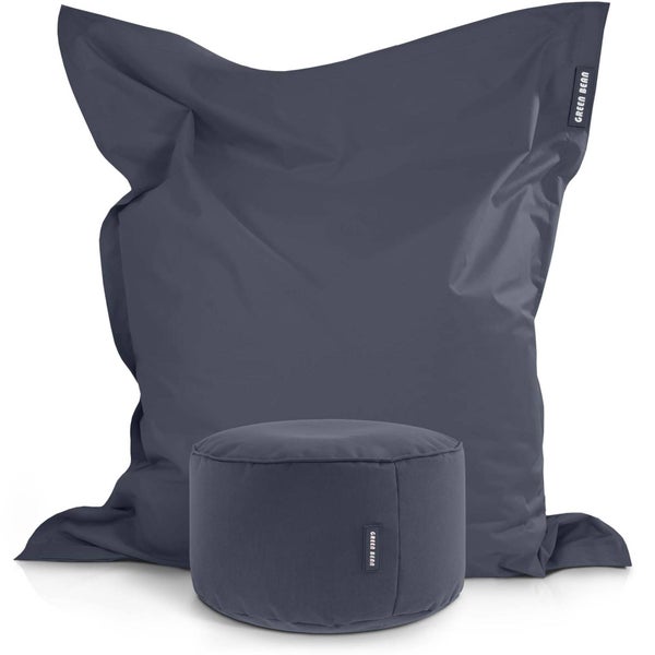 Green Bean 2er Set XXL Sitzsack inkl. Pouf fertig befüllt mit EPS-Perlen - Riesensitzsack 140x180 Lounge Sitz-Kissen Bean-Bag Chair - Dunkelgrau