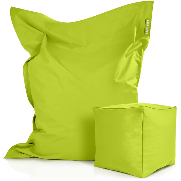 Green Bean 2er Set XXL Sitzsack inkl. Pouf fertig befüllt mit EPS-Perlen - Riesensitzsack 140x180 Lounge Sitz-Kissen Bean-Bag Chair - Hellgrün