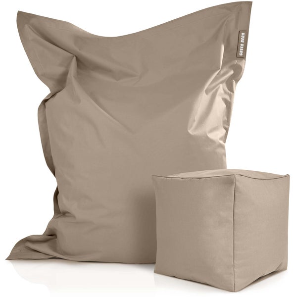Green Bean 2er Set XXL Sitzsack inkl. Pouf fertig befüllt mit EPS-Perlen - Riesensitzsack 140x180 Lounge Sitz-Kissen Bean-Bag Chair - Taupe