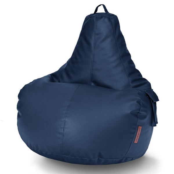 Green Bean Sitzsack aus Kunstleder mit EPS Perlen Füllung - 90 x 80 x 70 cm - Bean Bag Sitzkissen Sitzpuff Sitzsessel Bodenkissen Lounge Gaming Chair Rückenlehne - Dunkelblau